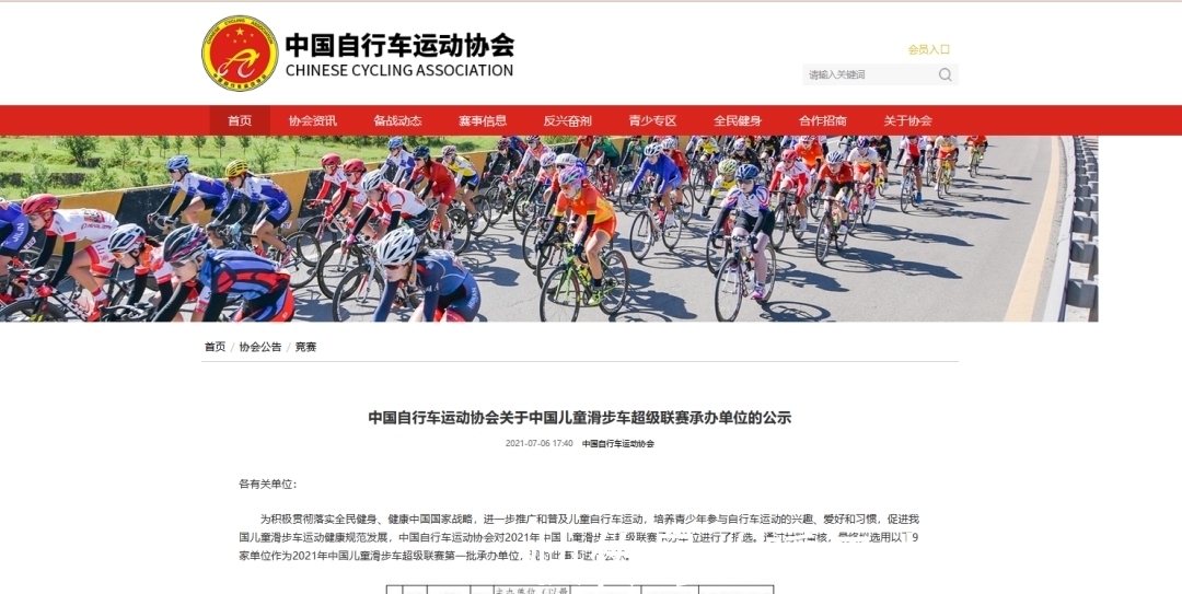 以下为官方网站中国自行车协会原文: